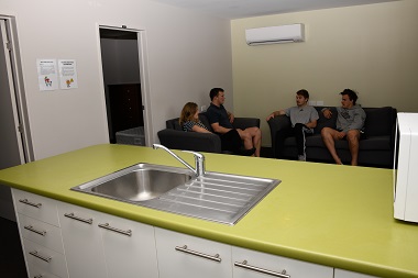 Each unit is fully furnished and has its own kitchen and bathroom and five rooms. Beds are king singles and each room has a desk, chair and wardrobe.